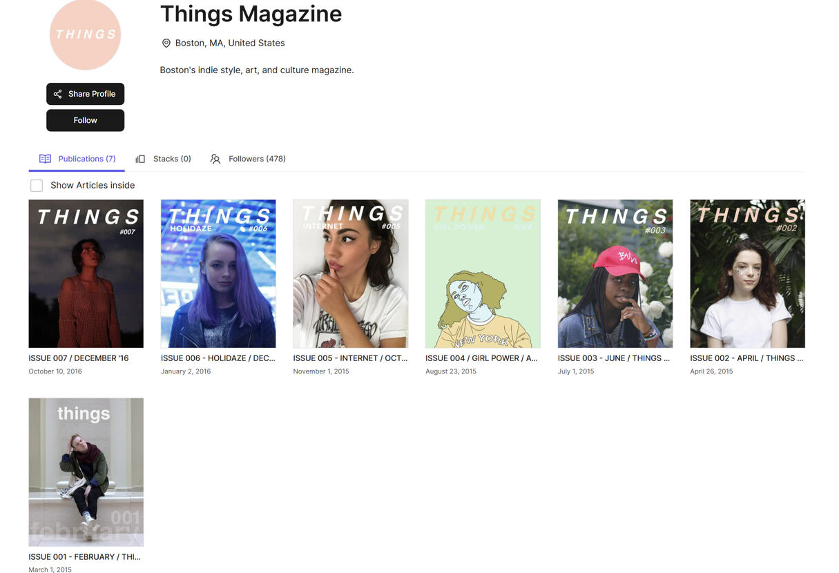 The final issue of Things Magazine (2014-2017), Issue #007, published in 2016 captured on the Wayback Machine.