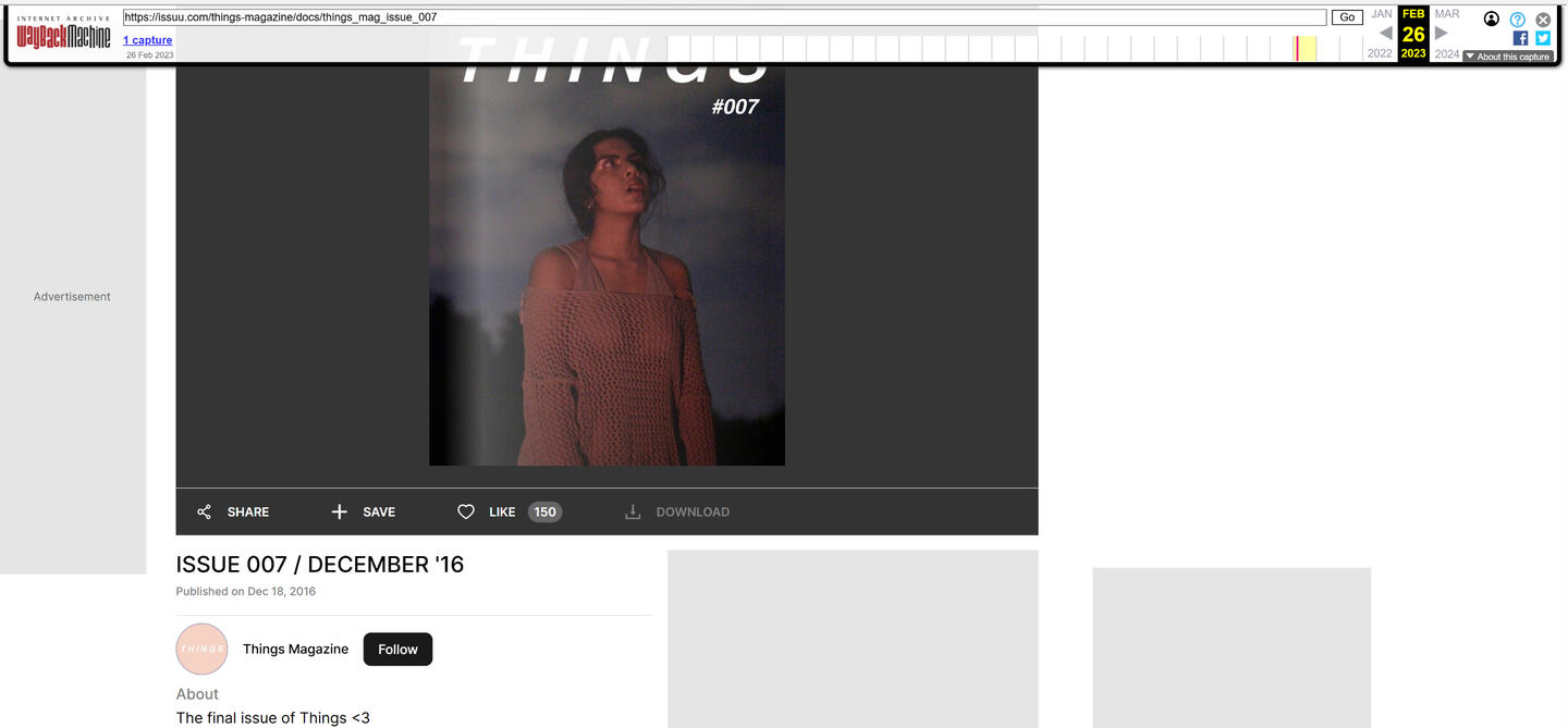 The final issue of Things Magazine (2014-2017), Issue #007, published in 2016 captured on the Wayback Machine.