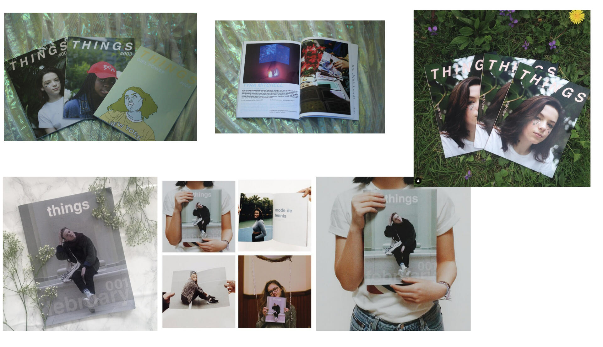 Left to right: Screenshot of Things Mag's instagram page, Dazed article featuring Things Mag in 2015, meme made by Gabi Barroso, blurb from Dazed article.